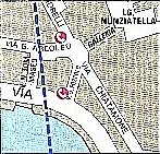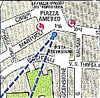 ... è raggiungibile tramite la metropolitana delle FS [mappa] , la funicolare di Chiaia [mappa] e vari autobus pubblici. Orientandoci sulla mappa (Tav 25 B1), PA si trova in alto al centro. Nella foto (a destra) è ripresa, rispetto alla tavola, dal basso verso l'alto ed è appena visibile (in basso al centro) la stazione della metropolitana. | ![]() |