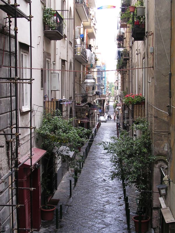 Proseguendo per via Vittoria Colonna [mappa], ci affacciamo alla prima traversa (foto) dove una rampa di gradini ci porta rapidamente giù per Via Giovanni Bausan [mappa] (+11 m). Da qui, in fondo, possiamo scorgere Via Principessa Rosina Pignatelli [mappa] (+2 m), la Riviera di Chiaia [mappa], i giardini della Villa Comunale [mappa] , ancora oltre, Via Francesco Caracciolo [mappa] (+3 m) ed infine il mare. | ![]() |