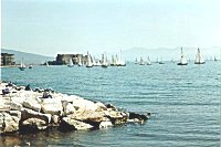 | Una regata ravviva all'orizzonte l'immagine del Castel dell'Ovo. | ![]() |