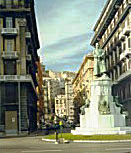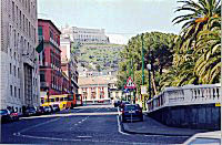 Via Cesario Console (da +10 a +19 m) (tav 26 C2) vista da Via Nazario Sauro, all'incrocio (+10 m) con Via F. Acton. In fondo alla strada, Piazza del Plebiscito. Sulla collina, la certosa di San Martino. |