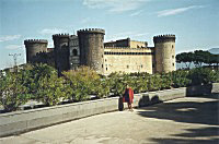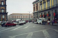 A destra si intravede la facciata del Palazzo Reale. Sulla collina, la certosa di San Martino ed alle spalle Castel Sant'Elmo. |