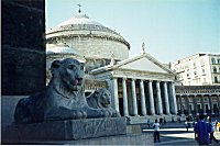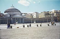 Al centro della piazza, due Monumenti Equestri. Sulla collina, al centro della foto, la certosa di San Martino e Castel Sant'Elmo. . |